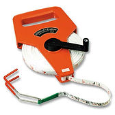 Provides the highest strength and the lowest elongation. Polyvinyl chloride (PVC) coating and imprinting ensures long use. Made from non-conducting materials. Stains, dirt, dust and mildew wipe clean with soap and water. Lightweight case is virtually shatterproof. The special handle design makes fast work of reeling. Tape width = 1/2 in., with folding metal end hook. Comes standard with the large appraisers hook end (100′ only). Tenths or Inches, printed on one side.